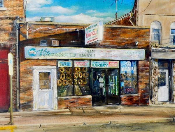 I have always taken the photographs on which I base my studio paintings. Visually orienting them from the street establishes a familiar, drive-by sense of movement. I rarely, if ever, edit the landscapes; I find the telephone poles, wires, traffic lights, and curbside debris almost as interesting as the buildings themselves. An advantage